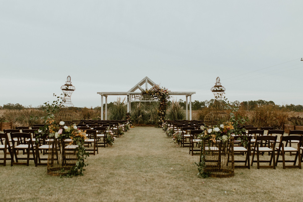The garden is nestled at the end of a winding pathway that gently curves through the landscape. Opening up into lush, green grass, perfectly suited for weddings. Encircling the area is a quaint, cottage-inspired garden, filled with colorful flowers, fragrant shrubs, and whimsical accents that evoke a cozy, vintage charm. At the heart of the setting stands a vintage white arbor, its delicate latticework and timeless design serving as an elegant focal point for any ceremony.